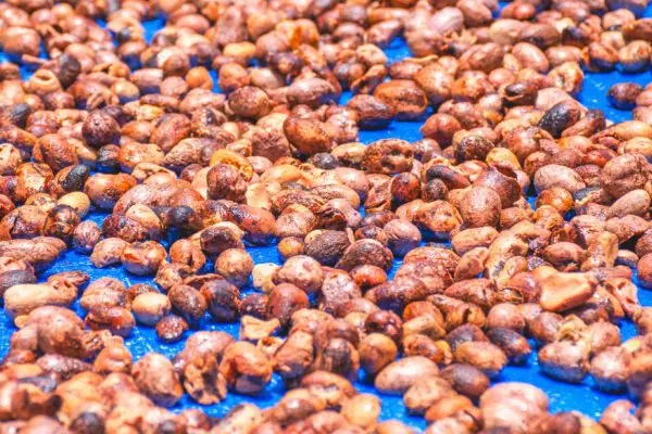 Prima della lavorazione, le noci di karité devono essere accuratamente essiccate.